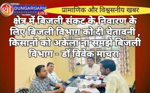 श्रीडूंगरगढ़ लाइव न्यूज़ 25 सितंबर 2024 श्रीडूँगरगढ़ क्षेत्र के किसानों के सामने इस महत्वपूर्ण समय में उत्पन्न बिजली संकट लगातार...