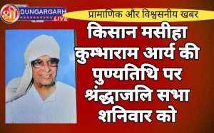 श्रीडूंगरगढ़ लाइव न्यूज़ 25 अक्टूबर 2024 किसान मसीहा कुम्भाराम जी आर्य की 29वीं पुण्यतिथि के अवसर पर तेजा मन्दिर श्रीडूंगरगढ़...