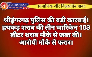 श्रीडूंगरगढ़ लाइव न्यूज़ 18अक्टूबर 2024 रेंज आईजी ओम प्रकाश पुलिस अधीक्षक कावेंद्र सिंह सागर के निर्देशन में पुलिस उपाधीक्षक निकेत...