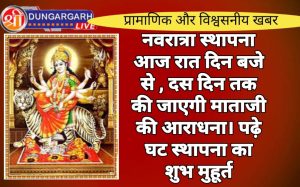 श्रीडूंगरगढ़ लाइव न्यूज़ 2 अक्टूबर 2024 इस बार शारदीय नवरात्र में 9 की जगह 10 दिन तक माता की आराधना...