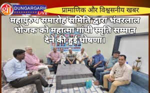 श्रीडूंगरगढ़ लाइव न्यूज़ 2अक्टूबर 2024 महापुरुष समारोह समिति ने इस वर्ष का प्रतिष्ठित ग्लोबल पुरस्कार महात्मा गाँधी स्मृति सम्मान 2024...