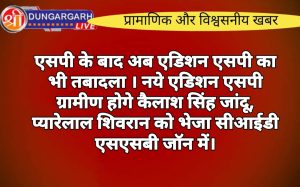 श्रीडूंगरगढ़ लाइव न्यूज़ 2 अक्टूबर 2024 राज्य सरकार ने एक आदेश जारी करके प्रदेश के कई जिलों में एडिशनल एसपी...