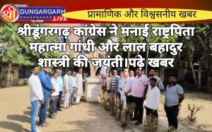 श्रीडूंगरगढ़ लाइव न्यूज़ 2 अक्टूबर 2024 आज श्रीडूंगरगढ़ कांग्रेस कमेटी की ओर से राष्ट्रपिता महात्मा गांधी जीऔर पूर्व प्रधानमंत्री लाल...