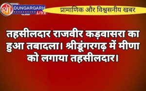 श्रीडूंगरगढ़ लाइव न्यूज़ 3 अक्टूबर 2024 राजस्व मंडल ने गुरुवार को 341 तहसीलदार व नायब तहसीलदार के तबादले किए हैं।...