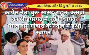 श्रीडूंगरगढ़ लाइव न्यूज़ 3 अक्टूबर 2024 आज कांग्रेस नेता एवम चुरू सांसद श्री राहुल कसवां का बीकानेर जाते समय श्रीडूंगरगढ़...