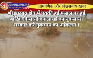 श्रीडूंगरगढ़ लाइव न्यूज़ 9 अक्टूबर 2024 श्रीडूंगरगढ़ क्षेत्र में हुई अचानक बारिश से किसानों को हुआ लाखों का नुकसान।मोठ-मूंग की...