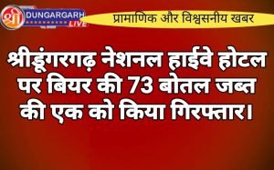 श्रीडूंगरगढ़ लाइव न्यूज़ 12 अक्टूबर 2024 पुलिस द्वारा अवैध शराब को लेकर चलाए गए ऑपरेशन तहत एक होटल से भारी...