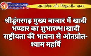 श्रीडूंगरगढ़ लाइव न्यूज़ 12 अक्टूबर 2024 खादी ग्रामोद्योग विकास समिति श्रीडूंगरगढ़ के मुख्य बाजार में बाल भारती स्कूल के पास...