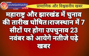 श्रीडूंगरगढ़ लाइव न्यूज़ 15 अक्टूबर 2024 इलेक्शन कमीशन ने मंगलवार को महाराष्ट्र और झारखंड विधानसभा चुनाव के साथ 48 विधानसभा...