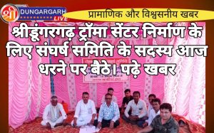 श्रीडूंगरगढ़ लाइव न्यूज़ 15 अक्टूबर 2024 ट्रॉमा सेंटर निर्माण संघर्ष समिति ने आज धरना प्रारंभ कर दिया है बाजार में...