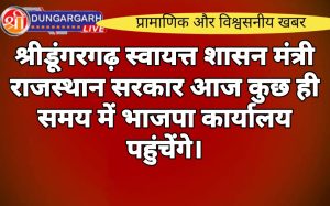 श्रीडूंगरगढ़ लाइव न्यूज़ 16 अक्टूबर 2024 नगरीय निकायों में दो दिन पहले प्रदेश भर के 497 पार्षदों के मनोनयन एवं...