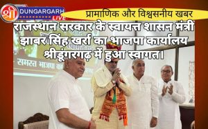 श्रीडूंगरगढ़ लाइव न्यूज़ 16 अक्टूबर 2024 भाजपा कार्यालय श्रीडूंगरगढ़ पधारे राजस्थान सरकार के स्वायत्त शासन मंत्री श्री झाबर सिंह खर्रा...