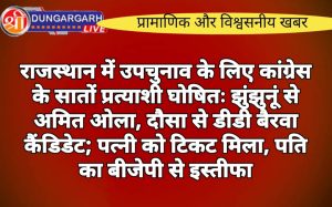 श्रीडूंगरगढ़ लाइव न्यूज़ 24 अक्टूबर 2024 राजस्थान उपचुनाव में कांग्रेस ने सातों सीटों पर उम्मीदवार घोषित कर दिए हैं। झुंझुनूं...