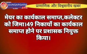 श्रीडूंगरगढ़ लाइव न्यूज़ 27 नवंबर 2024 राजस्थान के 49 निकायों का कार्यकाल समाप्त होने पर प्रशासक नियुक्त कर दिए गए...