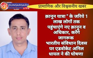 श्रीडूंगरगढ़ लाइव न्यूज़ 27 नवंबर 2024 अपने हक व अधिकारों की जानकारी ना होने के चलते बड़ी संख्या मे आमजन...