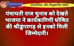 श्रीडूंगरगढ़ लाइव न्यूज़ 29 नवंबर 2024 भाजपा के पंचायत राज प्रकोष्ठ के जिला संयोजक हेमनाथ जाखड़ ने शुक्रवार को पंचायत...