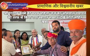 श्रीडूंगरगढ़ लाइव न्यूज़ 16 नवंबर 2024 श्रीडूंगरगढ़ कस्बे की प्रथम महिला जज बनने का गौरव प्राप्त करने वाली महिमा दुगड़...