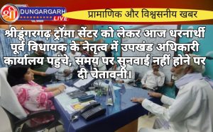श्रीडूंगरगढ़ लाइव न्यूज़ 21 नवंबर 2024 श्रीडूंगरगढ़ उपखंड कार्यालय के सामने ट्रॉमा सेंटर बनाने की मांग को लेकर धरना लगातार...