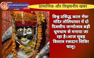 श्रीडूंगरगढ़ लाइव न्यूज़ 23 नवंबर 2024 तोलियासर गांव स्थित विश्वरक्षक बाबा भैरव नाथ का दो दिवसीय जन्मोत्सव श्री भैरव भक्त...