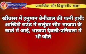 श्रीडूंगरगढ़ लाइव न्यूज़ 23 नवंबर 2024 खींवसर में हनुमान बेनीवाल की पत्नी कनिका बेनीवाल को भाजपा के रेवंतराम डांगा ने...