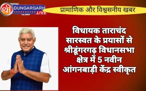 श्रीडूंगरगढ़ लाइव न्यूज़ 23 नवंबर 2024 श्रीडूंगरगढ़ विधानसभा क्षेत्र में विधायक ताराचंद सारस्वत की अनुशंसा पर प्रदेश सरकार की ओर...