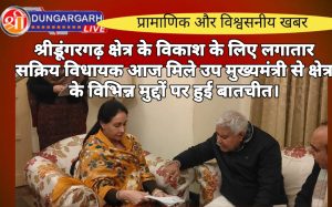श्रीडूंगरगढ़ लाइव न्यूज़ 27 दिसंबर 2024 श्रीडूंगरगढ़ विधायक श्री ताराचंद सारस्वत ने जयपुर में उप मुख्यमंत्री श्रीमती दिया कुमारी से...