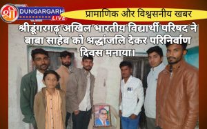 श्रीडूंगरगढ़ लाइव न्यूज़ 6 दिसंबर 2024 अखिल भारतीय विद्यार्थी परिषद् ने परिनिर्वाण दिवस के रूप मनाया नगर मंत्री लालचन्द मेघवाल...