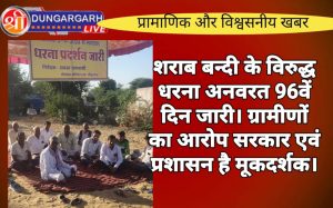 श्रीडूंगरगढ़ लाइव न्यूज़ 6 दिसंबर 2024 धीरदेसर चोटियान गाँव में शराब ठेका बन्द करने की मांग को लेकर 96वें दिन...