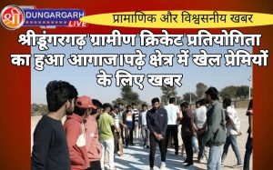 श्रीडूंगरगढ़ लाइव न्यूज़ 16 दिसंबर 2024 राजकीय खेल मैदान सुरजनसर में ग्रामीण क्रिकेट प्रतियोगिता का उद्धघाटन सरपंच ओमप्रकाश सारस्वत द्वारा...