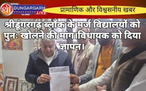 श्रीडूंगरगढ़ लाइव न्यूज़ 16 दिसंबर 2024 राजस्थान प्राथमिक एवं माध्यमिक शिक्षक संघ के प्रतिनिधि मंडल ने ब्लॉक अध्यक्ष मास्टर हंसराज...