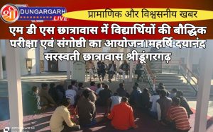 श्रीडूंगरगढ़ लाइव न्यूज़ 16 दिसंबर 2024 महर्षि दयानंद सरस्वती छात्रावास श्रीडूंगरगढ़ में रविवार को विद्यार्थियों की बौद्धिक परीक्षा, मन एवं...