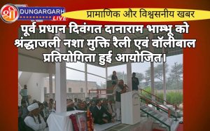 श्रीडूंगरगढ़ लाइव न्यूज़ 5 जनवरी 2025 पूर्व प्रधान दिवंगत दानाराम भाम्भू की प्रथम पुण्यतिथि के अवसर पर महर्षि दयानंद सरस्वती...