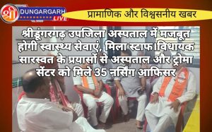श्रीडूंगरगढ़ लाइव न्यूज़ 10 जनवरी 2024 श्रीडूंगरगढ़ विधायक श्री ताराचंद सारस्वत के प्रयासों से श्रीडूंगरगढ़ उपजिला अस्पताल में अब नर्सिग...