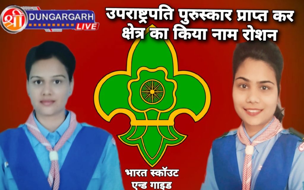 श्रीडूंगरगढ़ लाइव…04 मई 2023। भारत स्काउट एवं गाइड स्थानीय संघ बीकानेर सामुदायिक विकास सेवा गतिविधियों उत्कृष्ट प्रदर्शन के लिए स्काउट एवं गाइड द्वारा श्रीडूंगरगढ़ के निवासी पंडित पुरुषोत्तम गौड़ की पुत्री पूजा शर्मा एवं महामाया शर्मा को उपराष्ट्रपति पुरस्कार से सम्मानित किया गया है। भारत स्काउट एंड गाइड बीकानेर के सहायक प्रादेशिक संगठन कमिश्नर स्काउट (एएसओसी) श्री मानमहेंद्र भाटी ने उपराष्ट्रपति द्वारा दिए गए पुरस्कार बीकानेर में उपलब्ध कराया। भाटी ने बताया यह पुरस्कार मुख्य राष्टीय आयुक्त, नई दिल्ली द्वारा हस्ताक्षरित सर्टिफिकेट प्रदान किया जाता है तथा उन्होंने बताया इंटरव्यू के वक़्त स्काउट गाइड प्रशिक्षण में मिले अनुभव आपको अपने प्रतिद्वंदियों से हमेशा दो कदम आगे रखते हैं। इसके अलावा भारतीय रेलवे में जॉब के लिए स्काउट्स/गाइड्स आरक्षण का भी प्रावधान कुल मिलाकर आपको अपनी स्काउट/गाइड में मिले उपलब्धियों पर गर्व होना चाहिए। ये अनुभव प्रत्यक्ष रूप में तो न सही, परंतु अप्रत्यक्ष रूप में आपके आगामी जीवन में बहुत अहम भूमिका निभाते हैं। राष्ट्रपति तथा राज्यपाल द्वारा हस्ताक्षरित तथा स्टाम्पड सर्टिफिकेट बहुत अधिक महत्ता रखते हैं। इनके भाई घनश्याम गौड़ ने बताया दोनों बहनो को गत वर्षो मैं राज्यपाल पुरस्कार से सम्मानित किया जा चूका है। उपराष्ट्रपति पुरस्कार पाकर गदगद रेंजर पूजा शर्मा तथा रेंजर महामाया शर्मा ने बताया कि उपराष्ट्रपति पुरस्कार पाकर हमे काफी गौरव का अनुभव हो रहा है। इससे हमारे उपखण्ड का नाम रोशन हुआ है।उन्होंने बताया की हमारी स्नातक तक की पढ़ाई सेसोमू स्कूल और सेसोमू गर्ल्स कॉलेज से पूरी हुई हैं। अब हमे राष्ट्रपति पुरस्कार के लिए संघर्ष करना होगा साथ ही रोडवेज की बसों मैं फ्री यात्रा के लिए पास भी दिए जायेगे। दोनों युवतियों के परिवारवालो तथा जानकारों ने बधाइयाँ एवं उज्जवल भविष्य की शुभकामनायें दी।