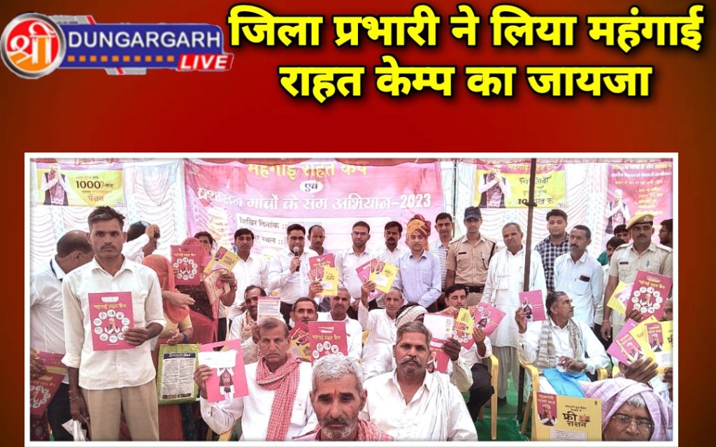 श्रीडूंगरगढ़ लाइव…11 मई 2023। प्रमुख शासन सचिव तथा जिला प्रभारी सचिव आलोक गुप्ता ने गुरुवार को श्रीडूंगरगढ़ पंचायत समिति में आयोजित स्थाई तथा समंदसर में आयोजित प्रशासन गांवों के संग एवं अस्थाई महंगाई राहत शिविर का निरीक्षण किया। इस दौरान उन्होंने शिविर की व्यवस्थाओं को देखा और कार्मिकों को मुस्तैदी के साथ कार्य करने के निर्देश दिए। उन्होंने कहा कि गर्मी के मद्देनजर शिविर स्थल पर पानी, छाया और कूलर आदि की पर्याप्त व्यवस्था रखी जाए। ग्रामीणों को किसी प्रकार की परेशानी नहीं हो, यह सुनिश्चित करें। उन्होंने कहा कि राज्य सरकार द्वारा इन शिविरों की नियमित समीक्षा की जा रही है। इसके मद्देनजर प्रत्येक कार्मिक अपनी जिम्मेदारी समझते हुए कार्य करें। उन्होंने लाभार्थियों को गारंटी कार्ड वितरित किए तथा योजनाओं के तहत दिए जाने वाले फायदों के बारे में बताया। उन्होंने कहा कि राज्य सरकार द्वारा 500 रुपए में गैस सिलेंडर, घरेलू उपभोक्ताओं को 100 तथा कृषि उपभोक्ताओं को 2000 यूनिट बिजली निशुल्क उपलब्ध करवाने का निर्णय लिया है। इन योजनाओं का लाभ पहुंचाने के लिए यह शिविर आयोजित किए जा रहे हैं। उन्होंने प्रशासन गांवों के संग के तहत लगाए जा रहे शिविरों में मौजूद विभागीय अधिकारियों से फीडबैक लिया।