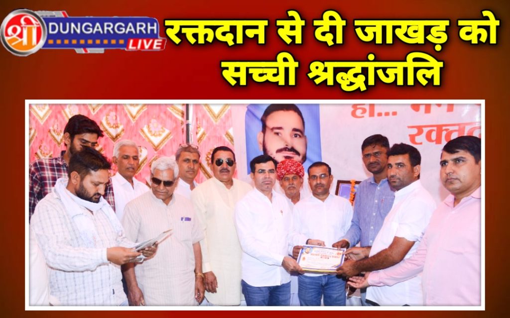 श्रीडूंगरगढ़ में समय समय पर रक्तदान शिविर का आयोजन होता रहता है। आज समाजसेवी और रालोपा नेता स्व. जेठाराम जाखड़ की स्मृति में रक्तदान शिविर का आयोजन किया गया। आयोजक मुकेश जाखड़ ने बताया कि आज क्षेत्र के अनेक गाँवो से रक्तवीरो ने रक्तदान किया। कुल 220 रक्तवीरो ने पंजीयन करवाया और 179 ने रक्तदान किया तथा 22 ने रक्तदान के लिए संकल्प लिया।