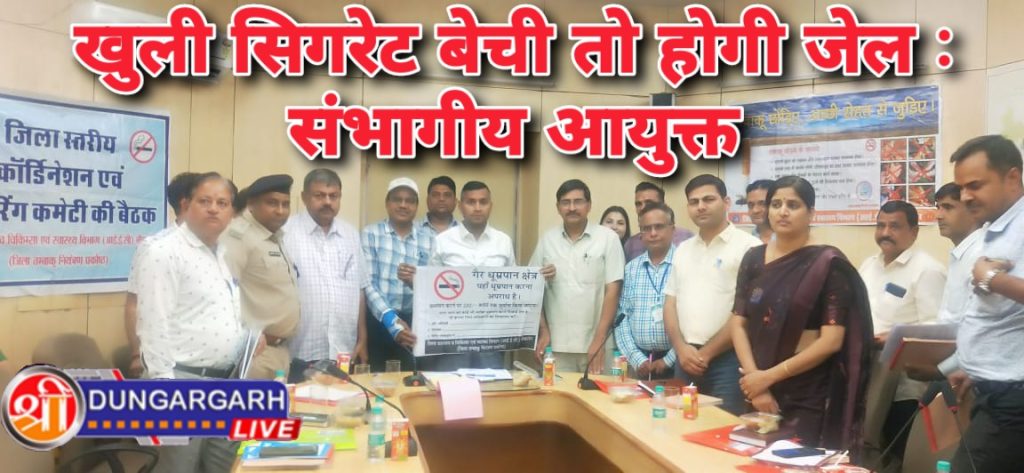 श्रीडूंगरगढ़ लाइव…19 मई 2023। खुली सिगरेट बेचते हुए पाए जाने पर विक्रेता को कोटपा एक्ट में जेल हो सकती है। संभागीय आयुक्त डॉ नीरज के पवन ने कहा कि बिना वैधानिक चेतावनी के तंबाकू उत्पाद नहीं बेचा जा सकता है। यह कोटपा एक्ट की धारा 7 का स्पष्ट रूप से उल्लंघन है । यदि कोई व्यक्ति ऐसा करता पाया जाता है तो उसे 2 से 5 वर्ष तक की सजा हो सकती है।