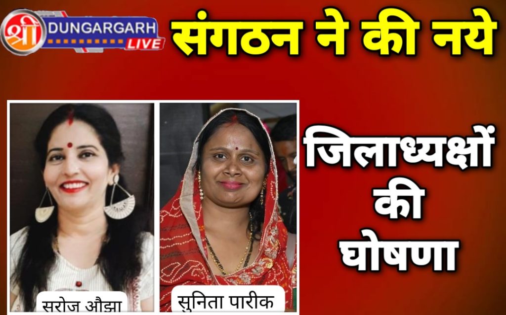 श्रीडूंगरगढ़ लाइव…20 मई 2023। राजस्थान ब्राह्मण महासभा महिला प्रकोष्ठ बीकानेर शहर जिलाध्यक्ष पद पर सरोज ओझा तथा बीकानेर देहात जिलाध्यक्ष पद पर सुनिता पारीक का मनोनयन किया गया है।