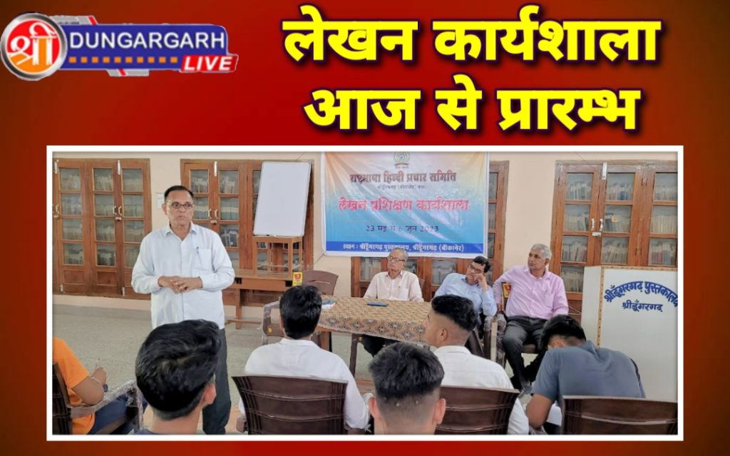 श्रीडूंगरगढ़ लाइव…23 मई 2023।कार्यशाला के संयोजक डॉ. चेतन स्वामी ने बताया कि नवलेखन के क्षेत्र में उतरने के लिए श्रीडूंगरगढ़ पुस्तकालय के सभागार में आज तीस अभ्यर्थियों ने बड़े उत्साह से भाग लिया। राष्ट्र भाषा हिन्दी प्रचार समिति की ओर से आयोजित इस कार्यशाला के उद्घाटन अवसर पर अपने उद्गार व्यक्त करते हुए पूर्व लेखाधिकारी श्री बजरंग शर्मा ने कहा कि लेखन में दोहरी चीज रहती है, उससे सरल कोई कार्य नहीं है तो उससे कठिन भी कोई कार्य नहीं है। यह निरंतर रुचि और अभ्यास से जुड़ा हुआ मसला है। लेखन की ऊंचाइयों की कोई सीमा नहीं है। श्रीडूंगरगढ़ के लेखकों ने अपने लेखन के बल पर राष्ट्रीय स्तर की ऊंचाइयां प्राप्त की है, इस विरासत को आगे बढाने के लिए नवलेखकों को आगे आना होगा।