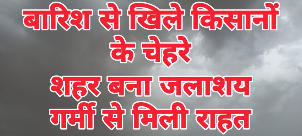 शहर में 30 मिनट तक बारिश का दौर चला और समाचार लिखे जाने तक रुक रुक कर बरसात हो रही है।जिसमे कई गलियों, निचले इलाकों में पानी भर गया। मुख्य बाजार, गांधी पार्क के पास और स्टेट बैंक के पास पानी भर गया।