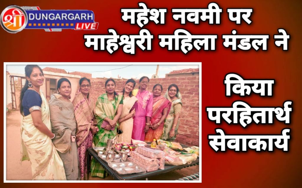 श्रीडूंगरगढ़ लाइव 29 मई 2023।अपने सामाजिक सरोकार के कार्यो, गौसेवा में हर पल तत्पर और समाज सेवा के लिए प्रसिद्ध माहेश्वरी महिला मंडल की सदस्याओ ने महेश नवमी के उपलक्ष्य में आज फिर अपनी परोपकार और सामाजिक सहभागिता निभाई। माहेश्वरी महिला मंडल की सदस्या प्रेम सोमाणी ने बताया कि आज महेश नवमी के पावन पर्व पर माहेश्वरी महिला मंडल की सदस्याओं ने श्रीडूंगरगढ़ के मंदबुद्धि अनाथ आश्रम और वृद्धाश्रम में बर्तन और राशन पहुंचाया और साथ ही उनसे ये वादा किया कि जब भी जरूरत पड़ेगी तब को उनके सहायतार्थ तैयार रहेंगे। आज महेश नवमी के दिन मंडल की सदस्याओं अनु डागा, सरोज बिहाणी, लीला सोमाणी, संजू तापड़िया, गायत्री जाजू, मनीषा राठी, मोनिका बिहाणी ने सेवाकार्य में अपनी सहभागिता निभाई।