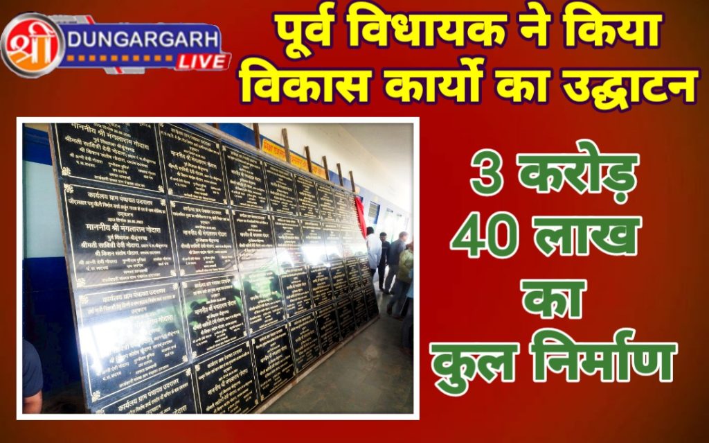 श्रीडूंगरगढ़ लाइव 31 मई 2023।कांग्रेस के सोशल मीडिया प्रभारी राजेश मंडा ने बताया कि उदरासर में आज पूर्व विधायक मंगलाराम गोदारा ने प्रधान कोटे से बने कुल 32 कार्यो का उद्धघाटन किया।इन सभी कार्यो में 3 करोड़ 40 लाख रुपयों की कुल लागत हुई, जिसमे 1 करोड़ 35 लाख की सीसी ब्लॉक सड़क, 50 लाख रुपये के 6 ट्यूबेल, 40 लाख रुपये दोनों विद्यालय में, जिसमे टिन शेड, सीसी ब्लॉक नवीनीकरण और अधूरी चार दिवारी, चोक निर्माण, स्टील ग्रिल, शौचालय निर्माण।