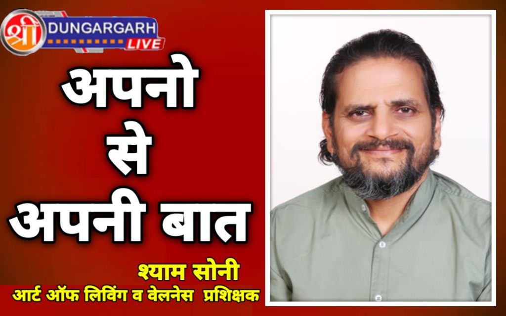 श्रीडूंगरगढ़ लाइव 04 जून 2023।श्री श्याम सोनी एक बहुआयामी व्यक्तित्व रखते हैं, आप न केवल एक सफल बिजनेसमैन हैं, बल्कि आर्ट ऑफ लिविंग के एक कुशल शिक्षक, योग प्रशिक्षक और मर्म चिकित्सा प्रशिक्षक भी हैं। आज से श्रीडूंगरगढ़ लाइव पर प्रतिदिन पाठकों से रूबरू हुआ करेंगे।