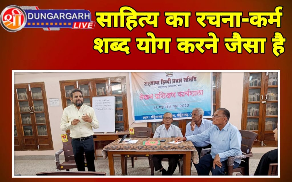 राष्ट्र भाषा हिन्दी प्रचार समिति के अध्यक्ष श्याम महर्षि ने कहा कि हमने इस शिविर के माध्यम से इस धारणा को भंग करने का कार्य किया है कि लेखन का कोई प्रशिक्षण संभव नहीं होता। अगले कुछ वर्षों में श्रीडूंगरगढ़ से साहित्यकारों की एक नई पीढ़ी अच्छी संख्या में सामने आएगी। वरिष्ठ साहित्यकार डाॅ मदन सैनी ने कहा कि आप साहित्यकारों की रचनाओं को पढ़ते समय अपनी विधागत रुचि को समक्ष कर किताबें पढें, लिखने की जल्दी पैठ बनेगी।