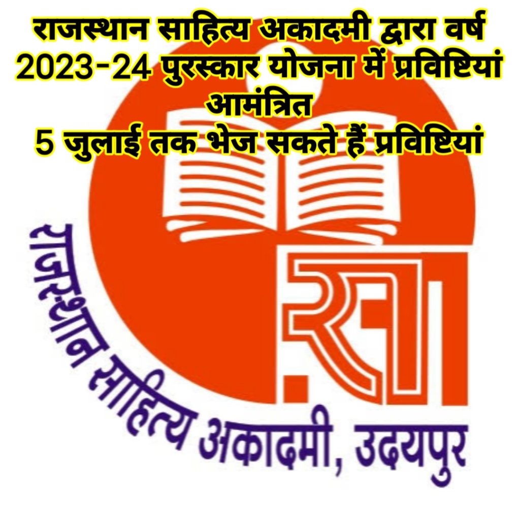 श्रीडूंगरगढ़ लाइव 05 जून 2023। राजस्थान साहित्य अकादमी द्वारा वर्ष 2023-24 में विभिन्न अकादमी पुरस्कारों हेतु राजस्थान निवासी लेखकों से प्रविष्टियां आमंत्रित की गई हैं। अकादमी अध्यक्ष डॉ. दुलाराम सहारण ने बताया कि सर्वोच्च ‘मीरां पुरस्कार’ हेतु गद्य-पद्य विधा की मौलिक, सृजनात्मक दिशापरक कृतियां आमंत्रित हैं। साथ ही कविता विधा मे ‘सुधीन्द्र पुरस्कार’, कथा-उपन्यास विधा में ‘रांगेय राघव पुरस्कार’, नाटक-एकांकी विधा में ‘देवीलाल सामर पुरस्कार’, निबंध, आलोचना, पाठ-संपादन, साहित्येतिहास विधा में ‘देवराज उपाध्याय पुरस्कार’, ललित गद्य, रेखाचित्र, संस्मरण, रिपोर्ताज, यात्रावृत्त, व्यंग्य, आत्मकथा, जीवन चरित्र आदि विधा में ‘कन्हैयालाल सहल पुरस्कार’, बाल साहित्य में ‘शम्भूदयाल सक्सेना पुरस्कार’ तथा प्रथम प्रकाशित कृति हेतु ‘सुमनेश जोशी पुरस्कार हेतु भी प्रविष्टियां आमंत्रित की गई हैं।
