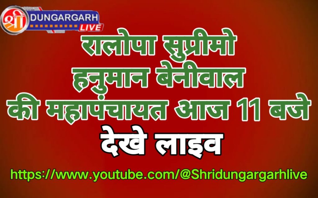 श्रीडूंगरगढ़ लाइव 09 जून 2023।राष्ट्रीय लोकतांत्रिक पार्टी सुप्रीमो हनुमान बेनीवाल राज्य की अशोक गहलोत सरकार को प्रदेश के किसानों की सम्पूर्ण कर्जमाफी, स्टेट हाइवे को टोल फ्री करने,भ्रष्टाचार मुक्त राजस्थान, फसली बीमा का समय पर पूरा क्लेम दिलवाने, सरकारी महकमों में रिक्त पदों को पारदर्शी भर्ती प्रक्रियाओ से भरने, सभी बेरोजगारो को समय पर भत्ता देने, लंबे समय से डिमांड भरे हुए कृषि कनेक्शन जारी करने,निर्बाध विद्युत आपूर्ति, नहरी पानी से सिंचित क्षेत्र को बढ़ाने, बढ़ते अपराधों पर रोकथाम के लिए प्रभावी कानूनी कार्यवाही करवाने, पेट्रोल -डीजल की कीमतों को कम करवाने सहित श्रीडूंगरगढ़ क्षेत्र की भी पेयजल, सड़क सहित स्थानीय सार्वजनिक समस्याओं पर घेरेंगे। कार्यक्रम में आरएलपी से भोपालगढ़ विधायक पुखराज गर्ग,मेड़ता विधायक इंदिरा देवी बावरी व खींवसर विधायक नारायण बेनीवाल सहित प्रदेश भर के आरएलपी नेताओ के साथ क्षेत्र के आरएलपी नेता और पूर्व विधानसभा प्रत्याशी दानाराम घिंटाला व डॉक्टर विवेक माचरा करेंगे संबोधित। बीकानेर जिले के सभी क्षेत्रों से किसान और युवा इस महापंचायत में भाग लेंगे।