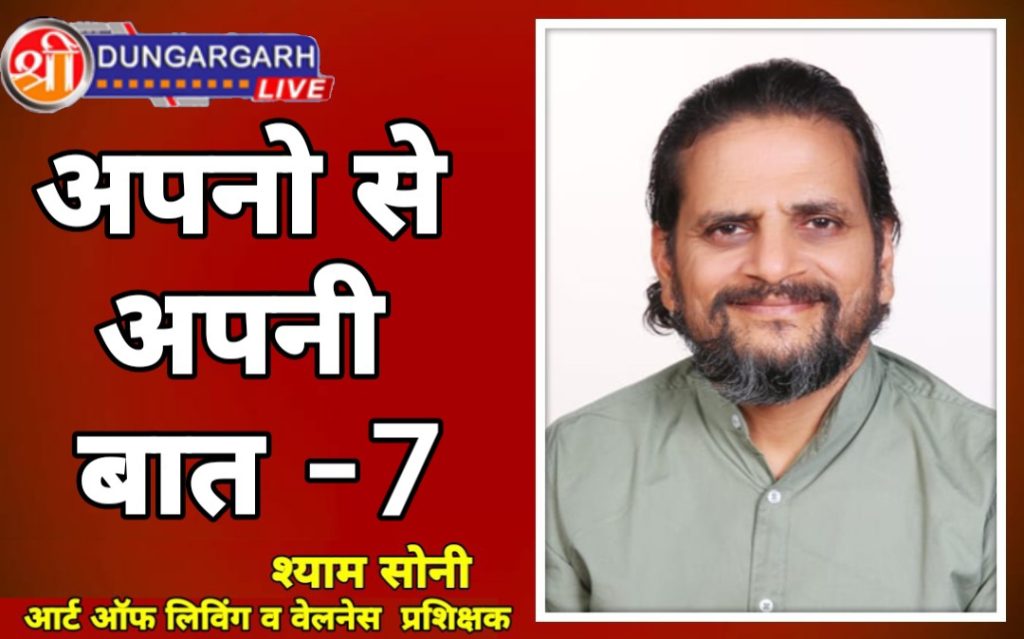 श्रीडूंगरगढ़ लाइव 10 जून 2023।श्री श्याम सोनी एक बहुआयामी व्यक्तित्व रखते हैं, आप न केवल एक सफल बिजनेसमैन हैं, बल्कि आर्ट ऑफ लिविंग के एक कुशल शिक्षक, योग प्रशिक्षक और मर्म चिकित्सा प्रशिक्षक भी हैं। आज से श्रीडूंगरगढ़ लाइव पर प्रतिदिन पाठकों से रूबरू हुआ करेंगे।