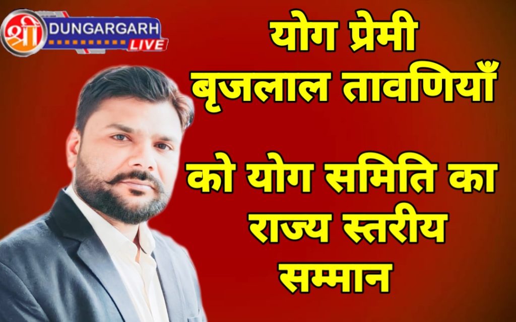 श्रीडूंगरगढ़ लाइव 01 जुलाई 2023। श्र डूंगरगढ़ कस्बे की तुलसी सेवा संस्थान में आयोजित नियमित योग शिविर में महाप्रज्ञ प्रेक्षा ध्यान सभागार भवन में बिग्गा निवासी योग प्रेमी व सामाजिक कार्यकर्ता बृजलाल तावणियाँ का योग समिति के प्रदेश संरक्षक योगाचार्य ओम प्रकाश कालवा व योग समिति के प्रदेश सलाहकार योगाचार्य नरेंद्र सिंह राजपुरोहित की ओर से राज्य स्तरीय सम्मान से सम्मानित किया गया।