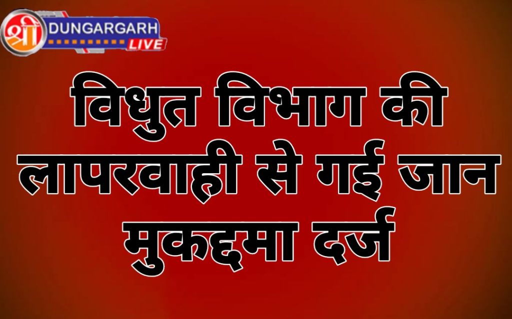श्रीडूंगरगढ़ लाइव 01 जुलाई 2023। राजपाल पुत्र नेतराम जाट पिचकराई ताल सरदारशहर ने पुलिस थाना श्रीडूंगरगढ़ में मुकद्दमा दर्ज करवाया कि उसके पिता नेतराम पुत्र कानाराम ने लिखमादेसर में डालूराम पुत्र हुकमाराम जाट का खेत काश्त कर रखा था। 03 जून को खेत का कार्य करते हुए विधुत पोल में करंट आने पर उन्हें इलाज के लिए बीकानेर पीबीएम हॉस्पिटल ले जाया गया। गंभीर स्थिति को देखते हुए उन्हें जयपुर एसएमएस हॉस्पिटल ले जाया गया जहां उनकी 11 जून को मृत्यु हो गयी। राजपाल ने विधुत विभाग पर लापरवाही का आरोप लगाते हुए मुकद्दमा दर्ज करवाया है। जांच हेडकॉन्सटेबल सुरेश कुमार करेंगे।