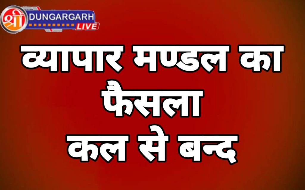 श्रीडूंगरगढ़ लाइव 03 जुलाई 2023। व्यापार मंडल के अध्यक्ष श्याम सुंदर पारीक ने कल सुबह 8 बजे से बाजार बन्द का आह्वान किया है।